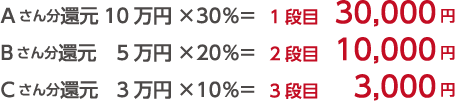 タイトルの計算率を掛けた金額が収入にあなたが獲得したポイント(左右のグループの中で販売個数の少ない方が基準)に対して、タイトルごとに設定された計算率(%)を掛けた金額が月の収入となります。